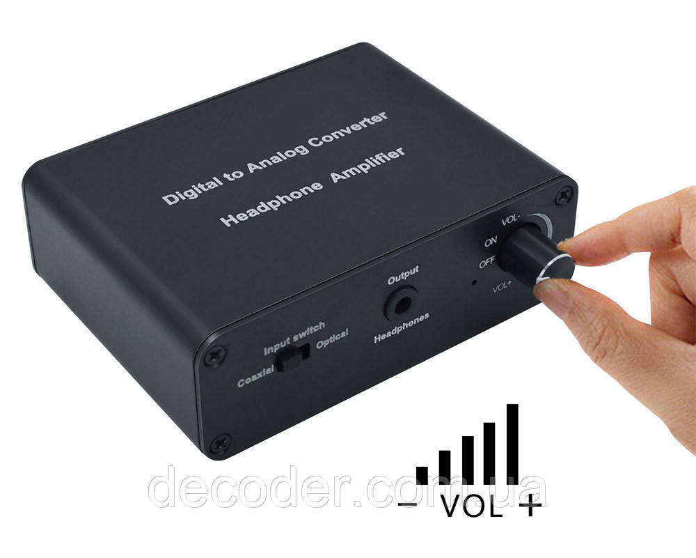 Конвертер — декодер звуку з цифрового (ЦАП optical Toslink S/PDIF оптичного) в аналоговий 2.0 стерео з регулятором гучності. У цьому конвертері використовується висококласний ЦАП CIRRUS LOGIC 8416 CZZ!